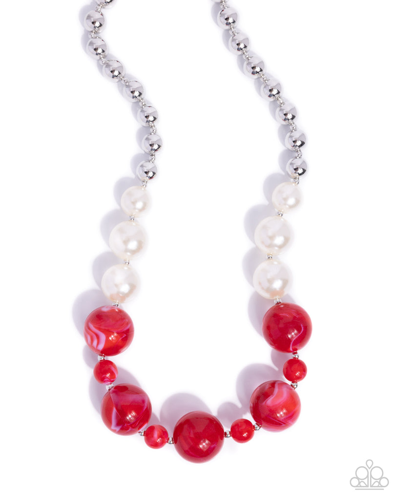 Paparazzi Serendipitous Statement - Red Pearl Necklace